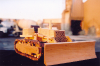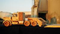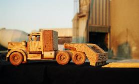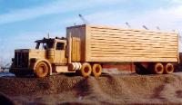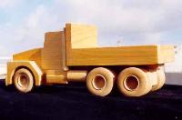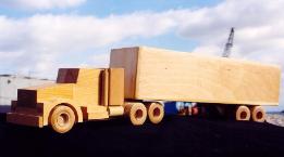 | Executive Line and Custom Line Designed and crafted for the experienced driver. The Executive Line represents larger, fine-detailed trucks patterned after the actual rigs and heavy equipment seen on highways, roads and job sites. Constructed from select cuts of oak, maple and walnut, each vehicle has an extensive list of details on both interior and exterior. Featuring walnut grills, CB radio, steering console, dashboard, walnut bucket or bench seats, 2 ¾ maple wheels, mud flaps, wooden engines and working hydraulics on the heavy equipment models (Back Hoe and Bulldozer). Knockabout Toy’s Executive trucks take you out on the road. The Custom Line is personalized for the individual. Past examples built to customer specifics include: Peterbilts with livestock trailers, Caterpillar D9 Dozers, Mack Dump trucks, Kenworths with a van trailers and Farm Tractors. We can also craft any rig combination that you may think of. Please send or email a photograph of your rig or machine and we will discuss how to reproduce it in wood. |