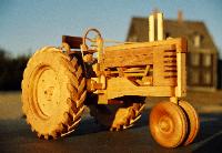 | The Green Farm Tractor Constructed of maple, cherry, and walnut hard woods. Details include: clutch, gas and brake pedals, realistic engine components, headlights, walnut seat, walnut radiator, and realistic treads on the rear wheels. Finished with hand rubbed Danish Oil. The detail shown in this tractor is a tribute to the American farming heritage. |