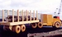 | Big and Little Rig Line Built and designed for the younger truck driver. Each truck is built one at a time at our toy shop in Searsmont, Maine. Handcrafted with a combination of pine, birch, oak and maple from local sawmills and recycled lumber. Assembled with wooden pegs and glue; no metal parts to worry about. The Big and Little Rigs are protected with a water-based, child safe finish. Crafted with care and precision they are made to last for a lifetime of play. |