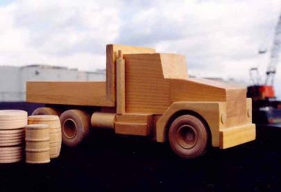 | When you need a truck that can handle the larger loads, then the cargo truck is the one. Seen all over America transporting everything from livestock to automobiles. Features of the Cargo Truck include: solid wooden construction, an open back for moving large loads, wooden maple wheels, wooden side mounted fuel tanks and exhaust stacks. The Cargo Truck measures 14"L x 5"W x 6"H. |